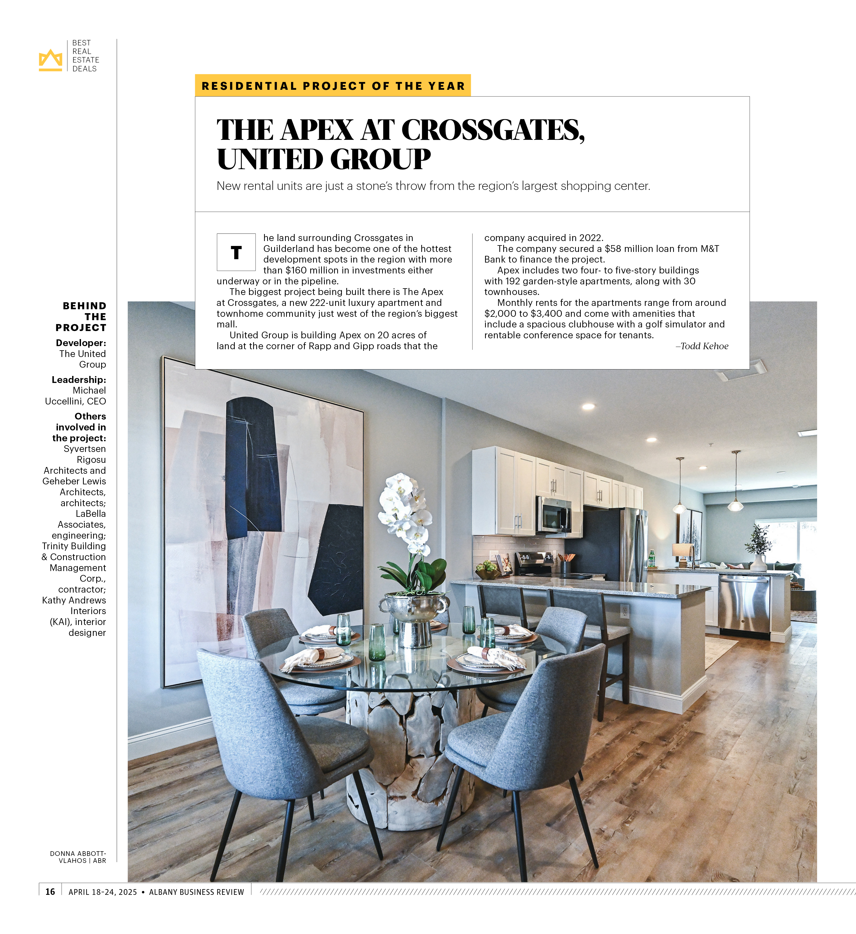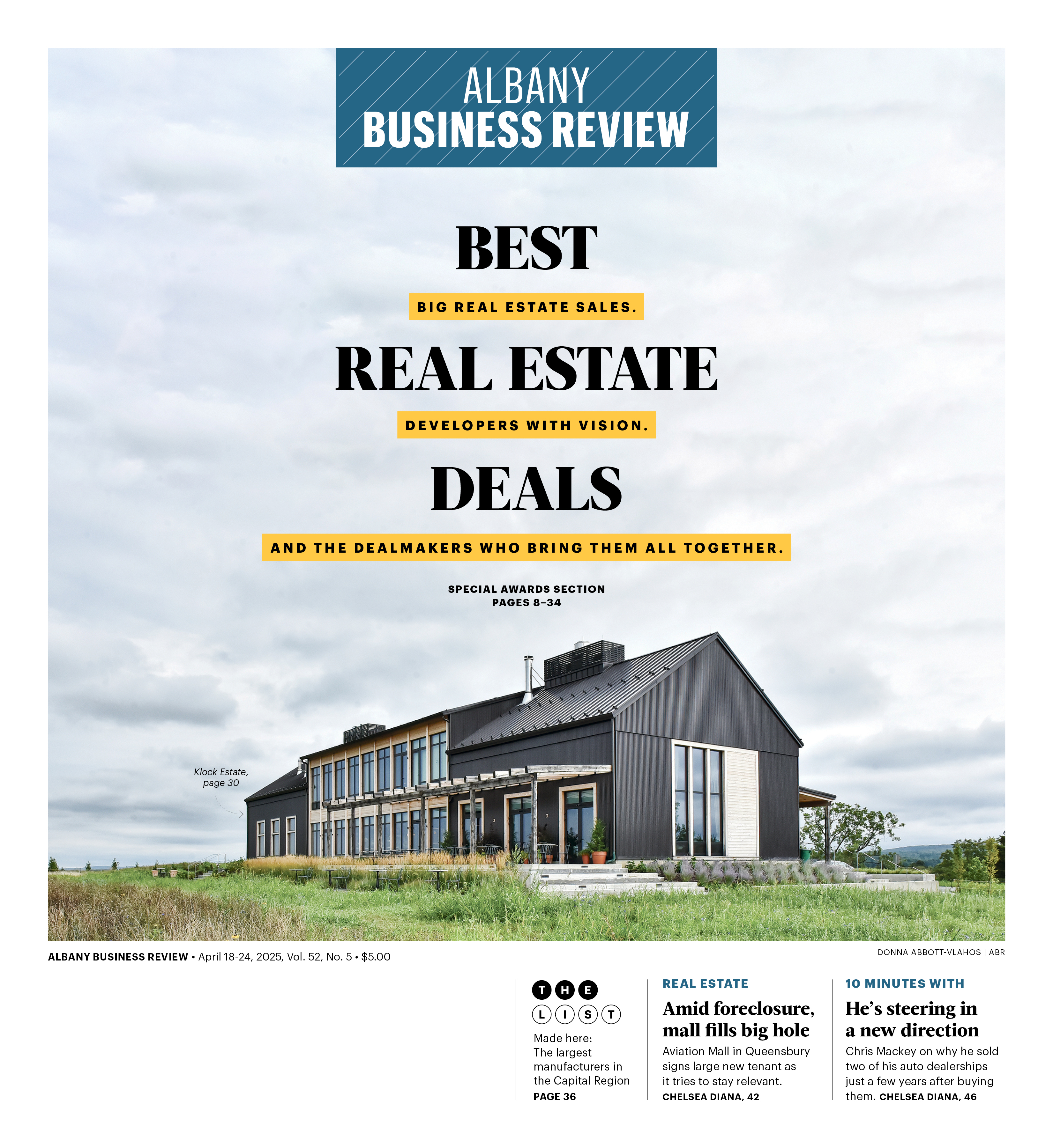 This is an annual awards publication by Albany Business Review highlighting the best in residential and commercial real estate over the past year.