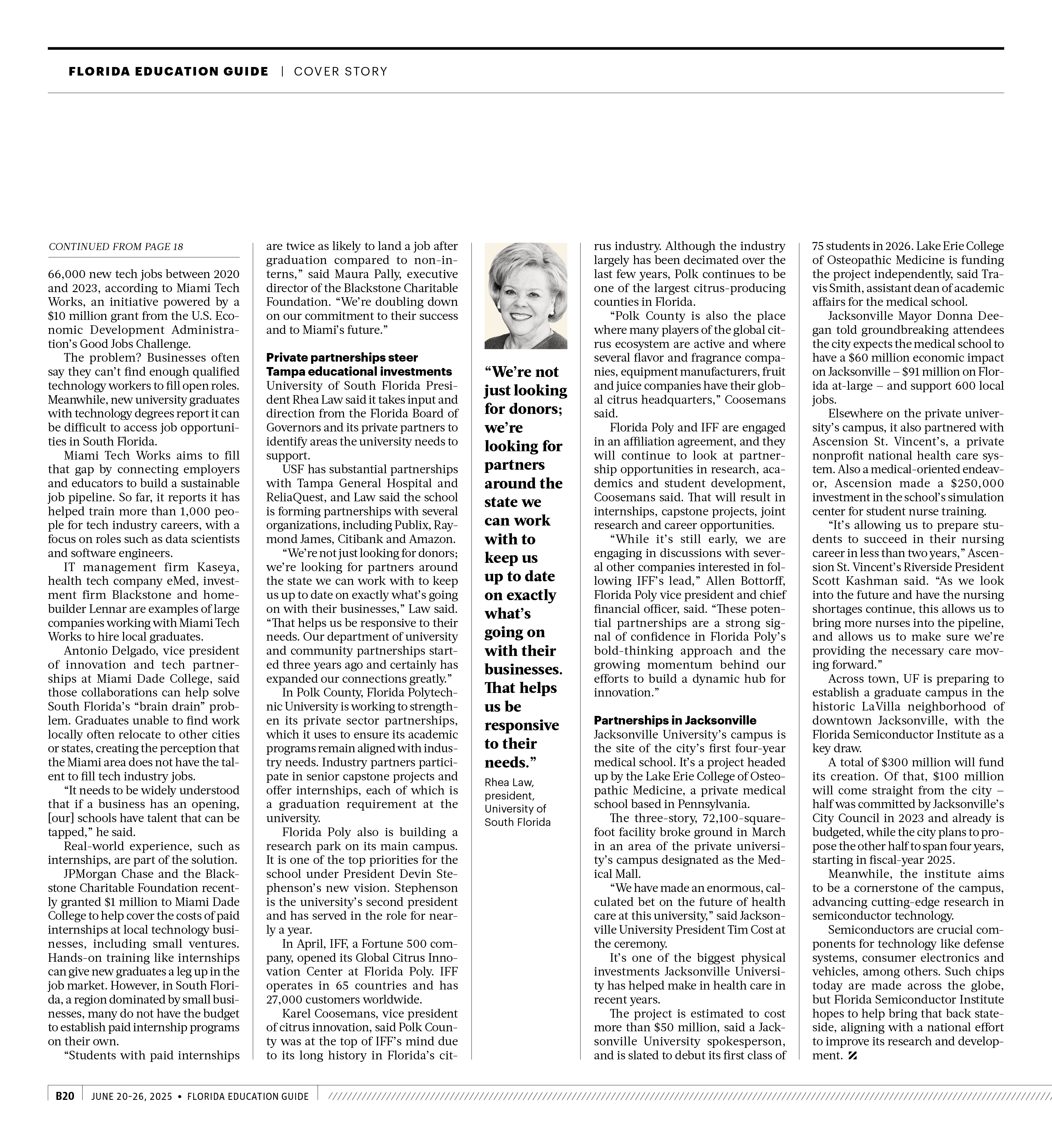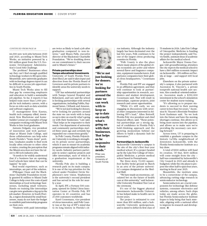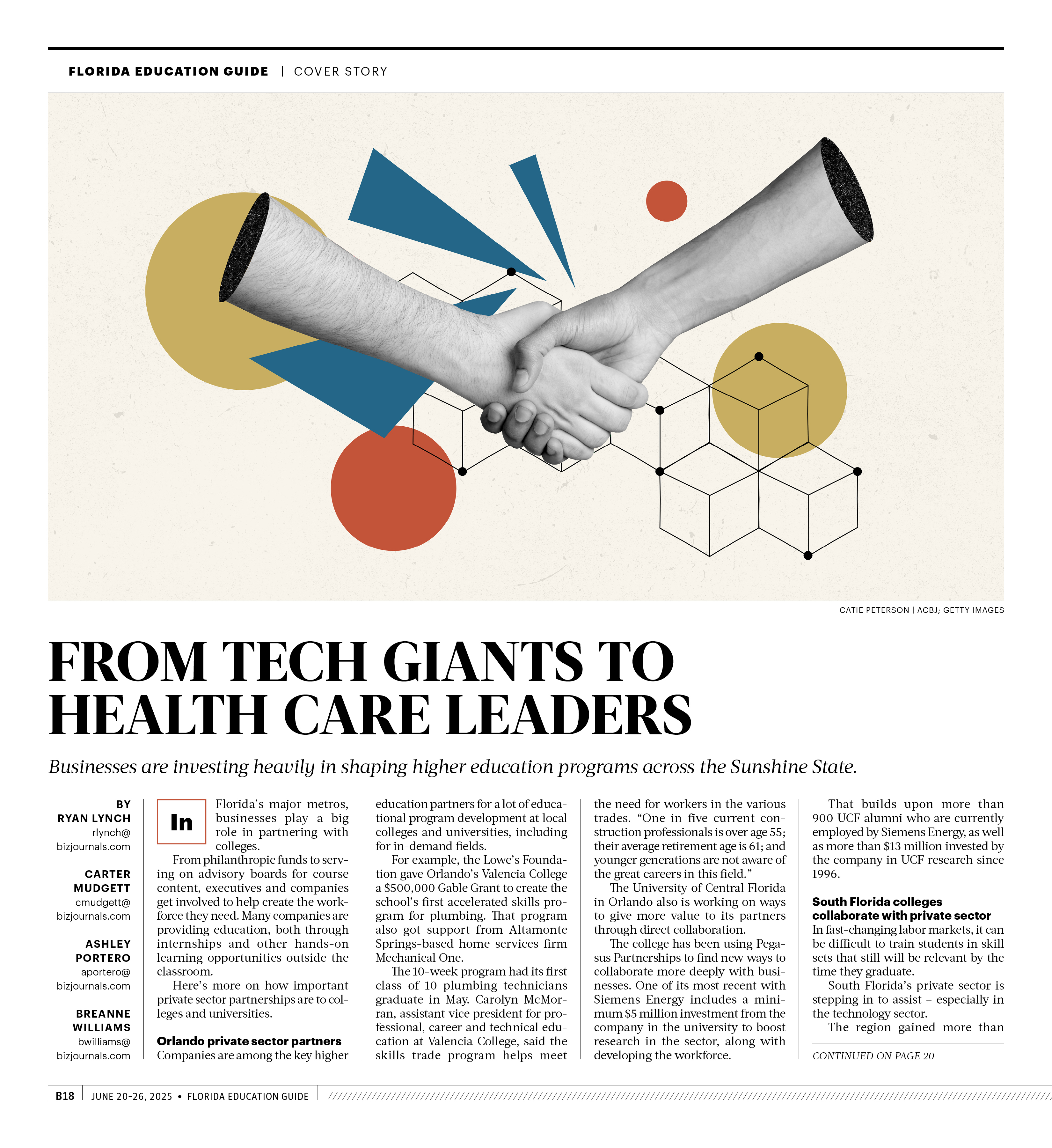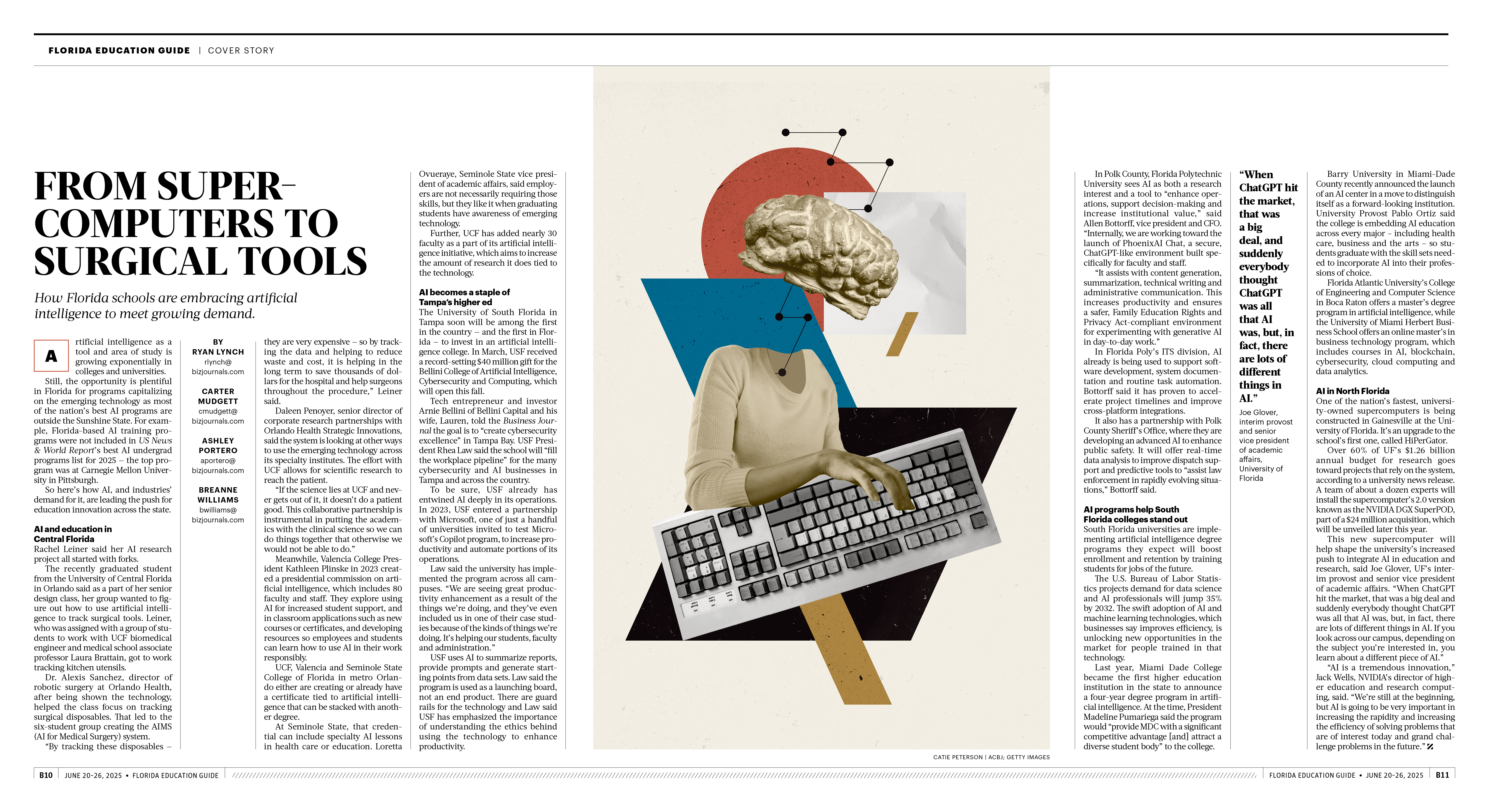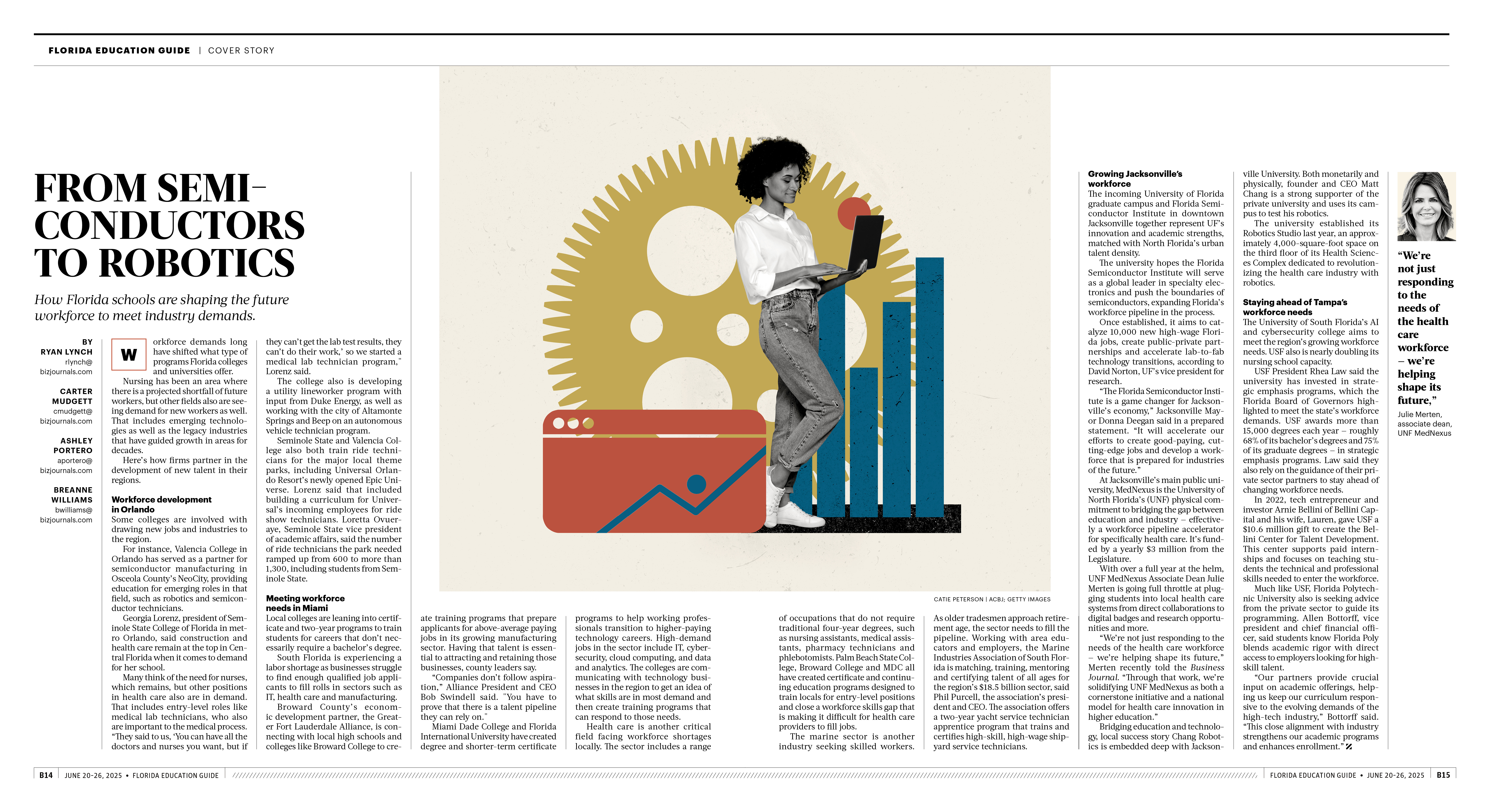 The Florida Education Guide published in all four of American City Business Journal’s Florida markets (Jacksonville, Orlando, Miami/Fort Lauderdale and Tampa Bay).